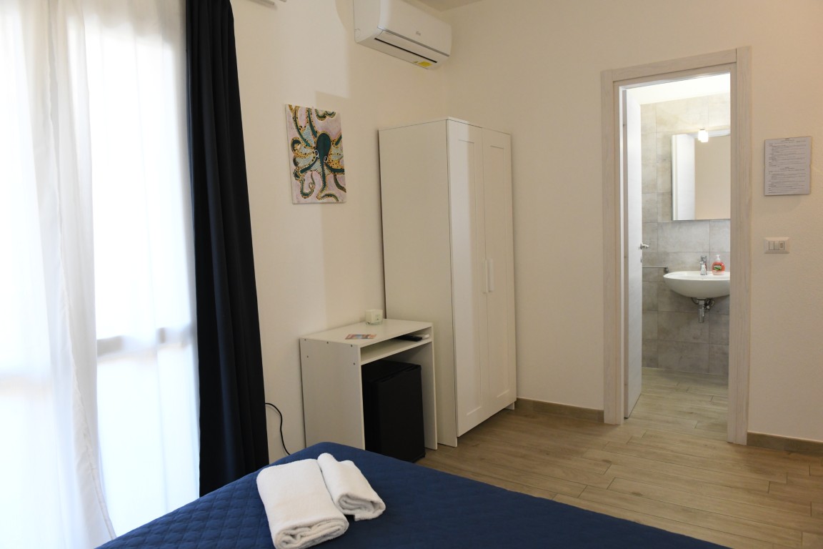Camera dotata di bagno privato con doccia, aria condizionata, riscaldamento, TV digitale terreste, TV satellitare, frigobar, cassaforte, balcone privato attrezzato.