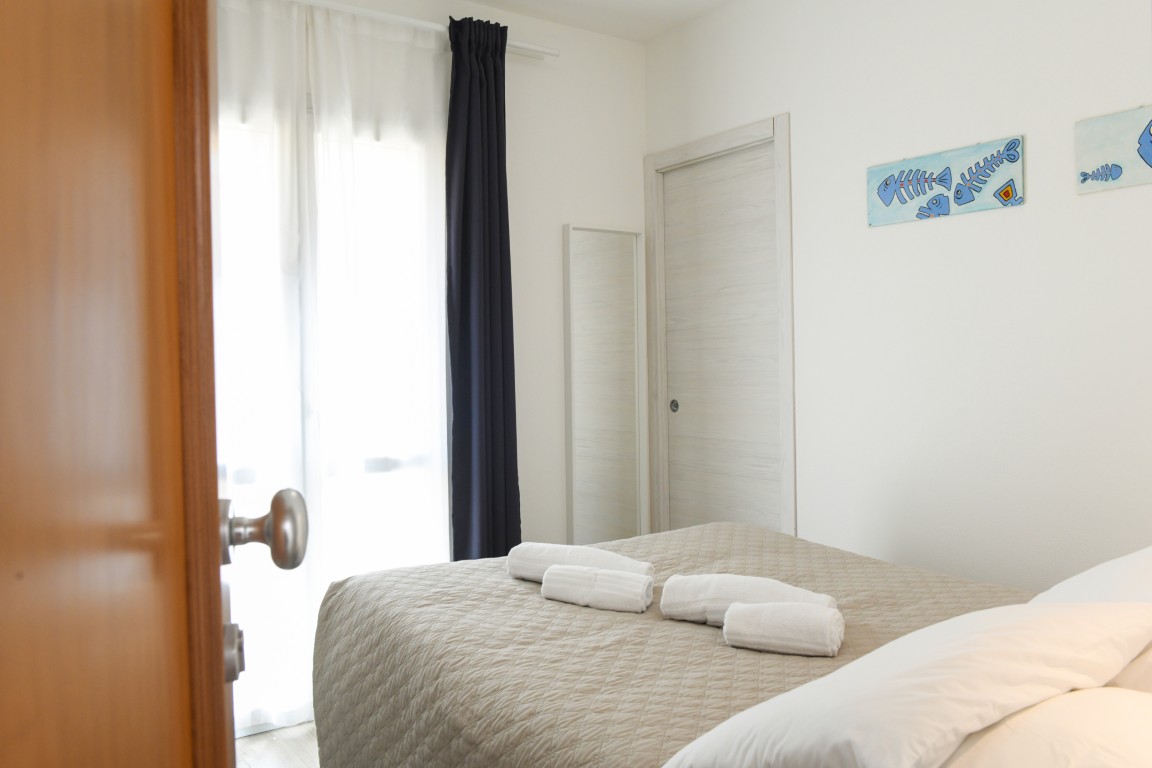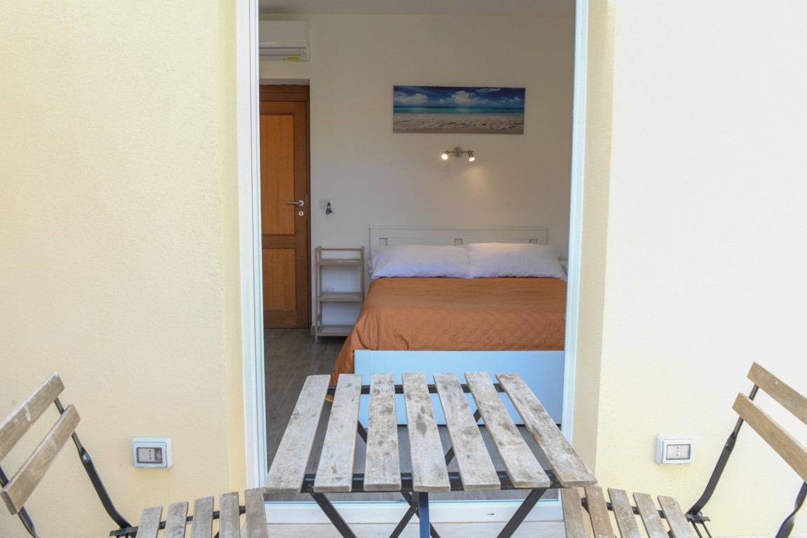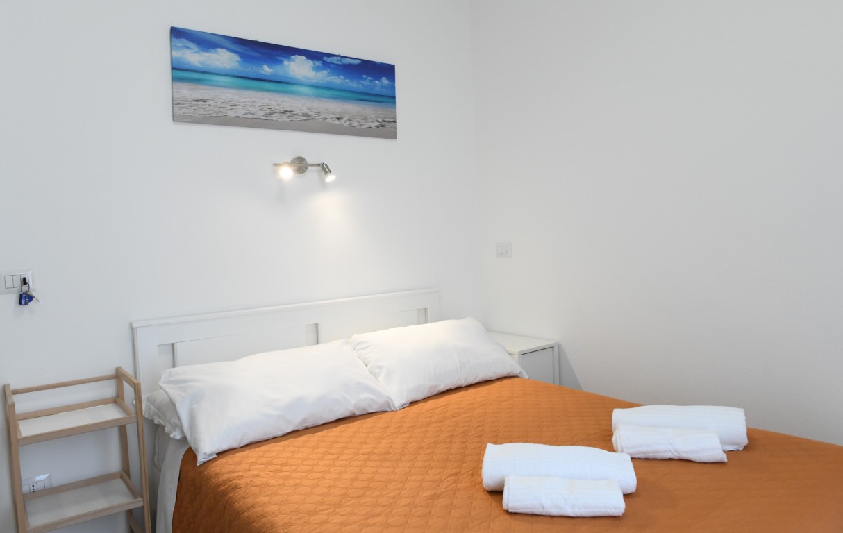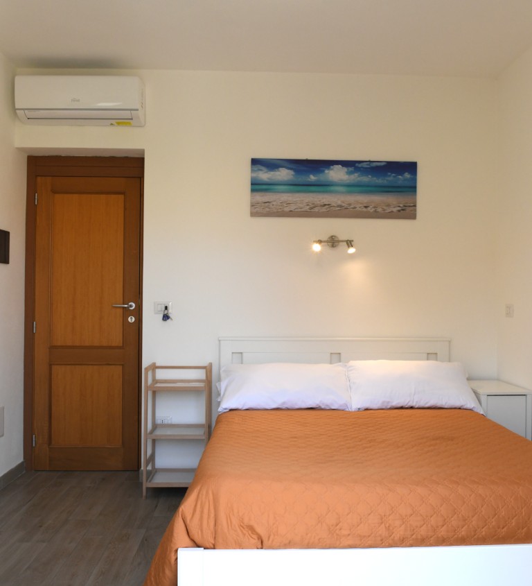 Camera ubicata all'ultimo piano e dotata di bagno privato con doccia, aria condizionata, riscaldamento, TV digitale terreste, TV satellitare, frigobar, cassaforte, ampia terrazza attrezzata.